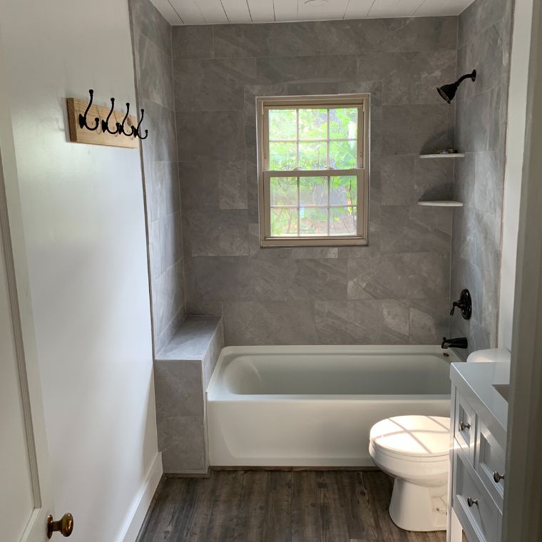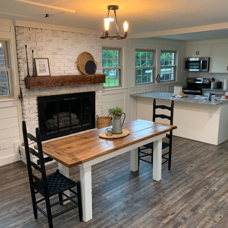 Completely updated this bungalow with new electrical, plumbing and flooring. Updated bathroom while exposing hidden brick to add character and charm. Exposed wood ceilings that were hidden by dated tile.