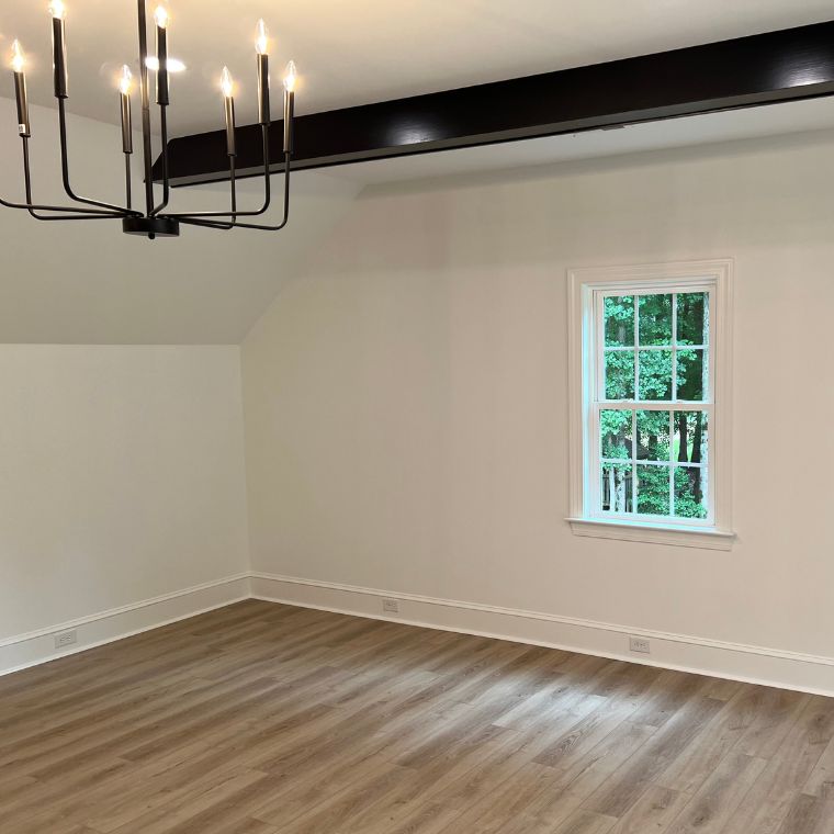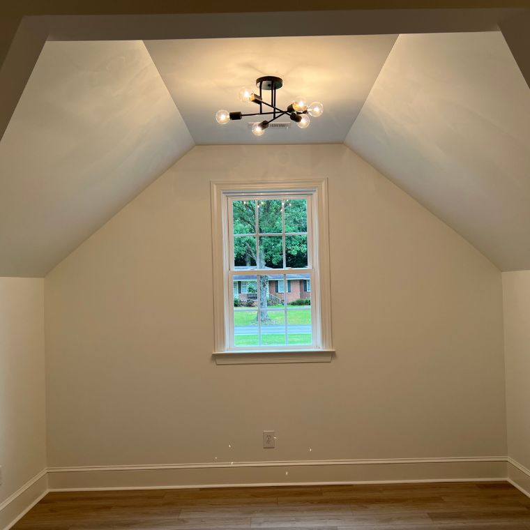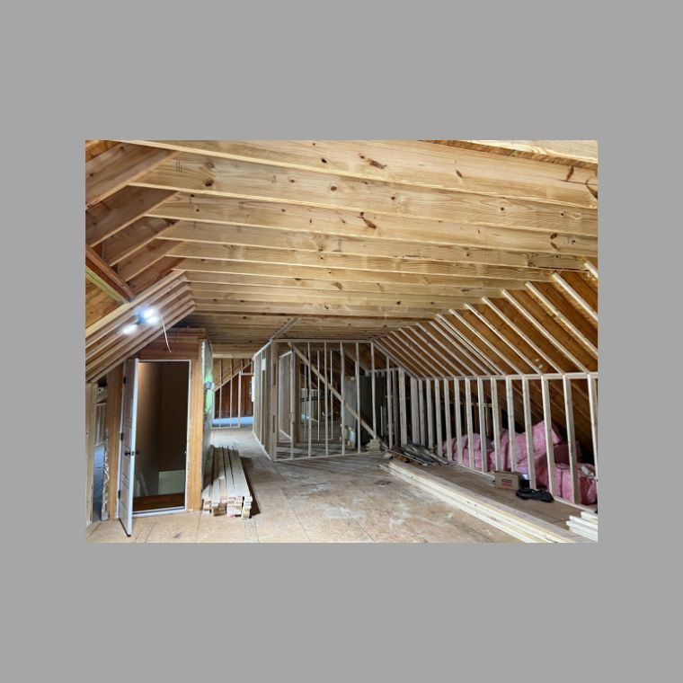 Converted this large unfinished upstairs into a 2 bedroom, 1 full bathroom and large gameroom space. Special features include custom bar, large closets, wood beams, and railing.